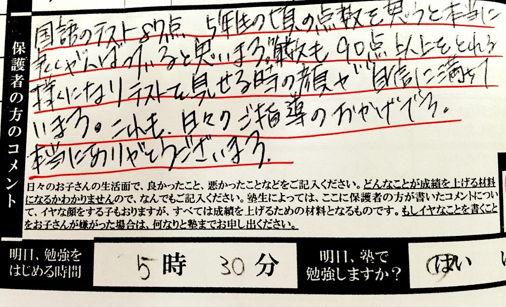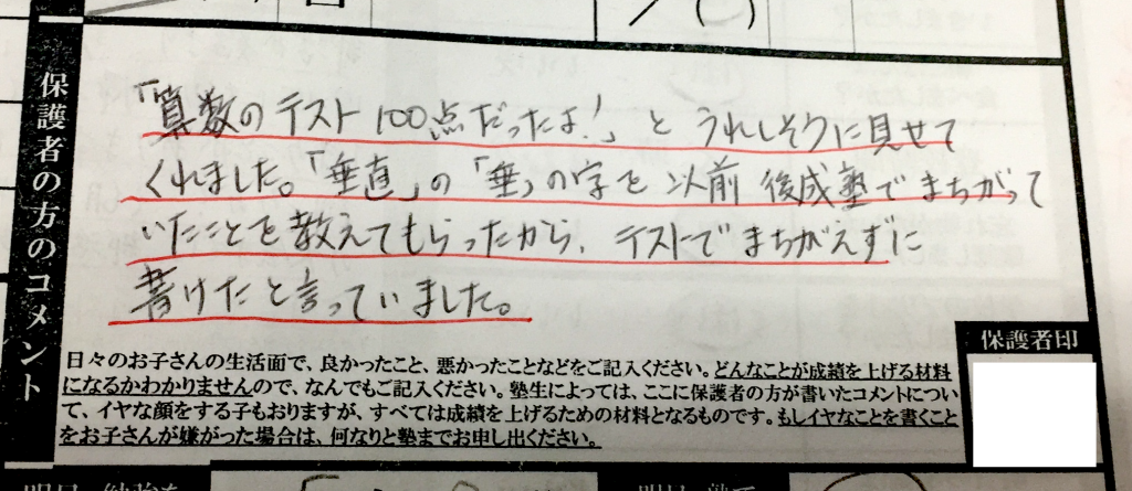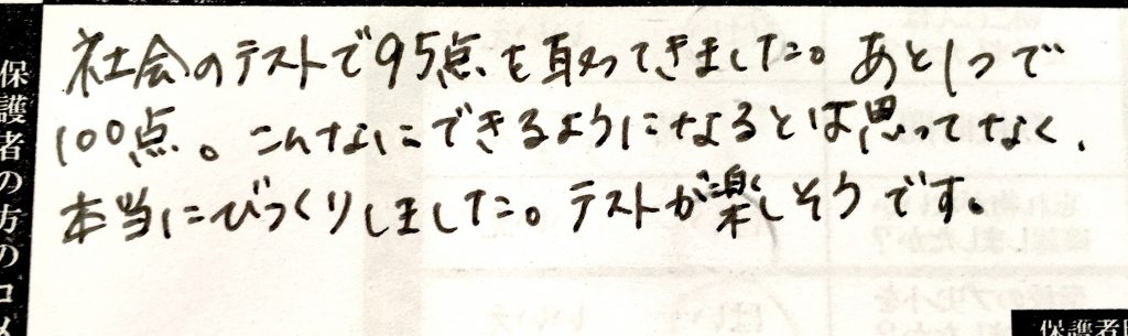 お子さんが後成塾に通うようになって、平穏で温かな日々を取り戻した保護者の皆さんのコメントの一部をご紹介します。