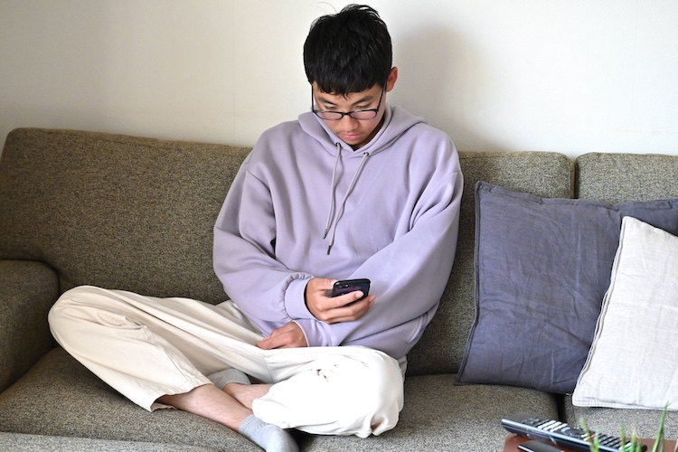 ソファでスマホをいじっているお子さん