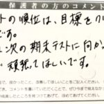 2025年9月25日 / 最終更新日 : 2025年9月25日 guest 保護者の皆様・卒業生の声 【保護者の皆様の声】テスト順位、目標クリア!気持ちは期末に向かっています! テスト順位、目標クリア! 気持ちは期末に向かってます! 定期テストの順位は、目標をクリアできてよかったです。 気持ちは次の期末テストに向かっているようなので、頑張ってほしいです。 […]
